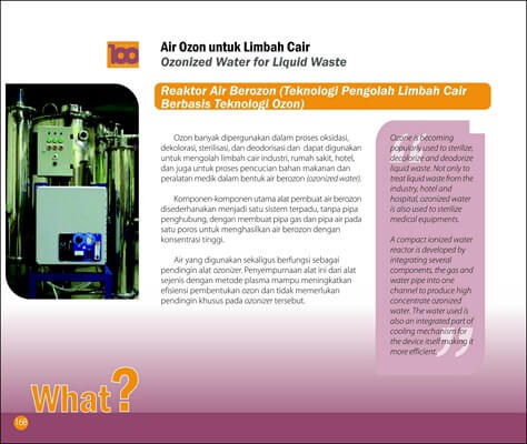 Ozon banyak dipergunakan dalam proses oksidasi, dekolorasi, sterilisasi,dan deodorisasi dan dapat digunakan untuk mengolah limbah cair industri, rumah sakit, hotel, dan juga untuk proses pencucian bahan makanan dan peralatan medik dalam bentuk air berozon (ozonized water).